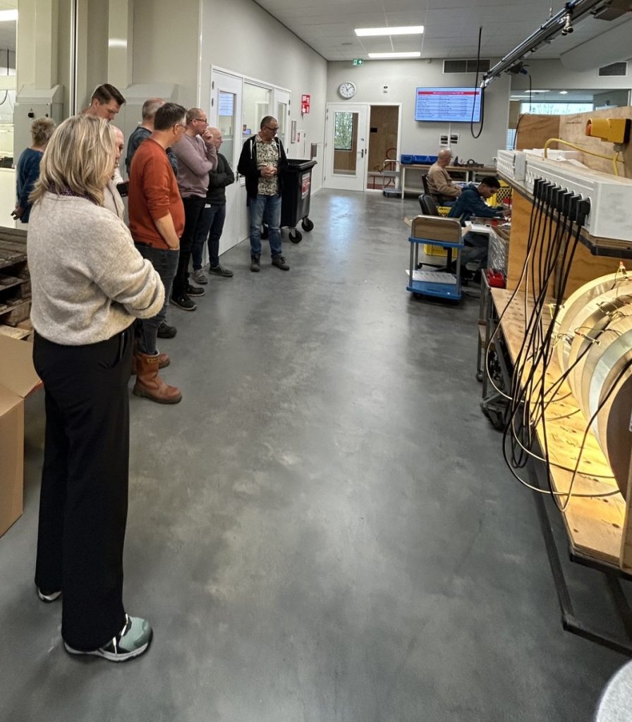 5 medewerkers van deze gemeente, in het werkzame leven verantwoordelijk voor de openbare verlichting en verkeersregelinstallaties, waren op uitnodiging van Innolumis naar iederz gekomen om met eigen ogen te aanschouwen hoe dagelijks 20 werknemers met een afstand tot de reguliere arbeidsmarkt met zorg en passie Innolumis armaturen assembleren.